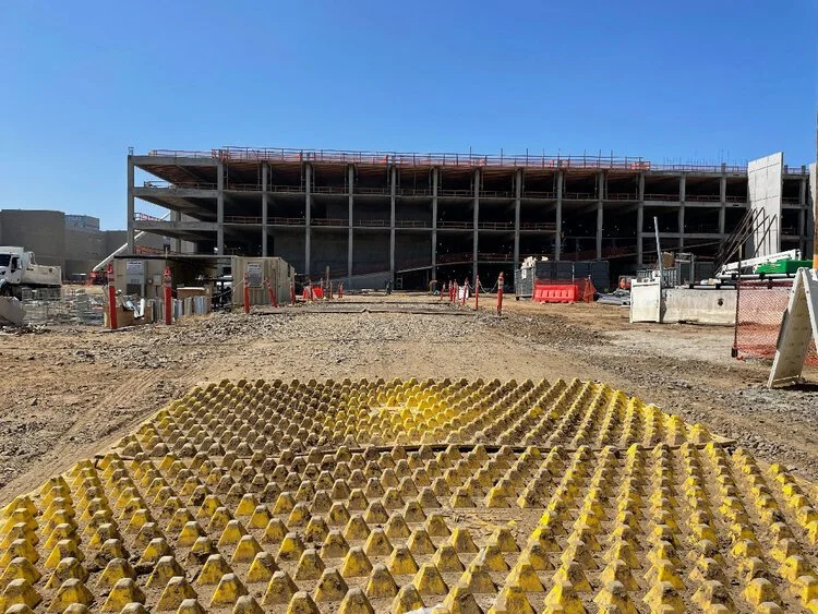 Because the projects are located in near proximity to the airport, contractors must adhere to an additional set of development requirements and regulations within the Airport Airside, Airport Landside, and Airport Landside Support Subareas. One serious matter at airports is FOD (Foreign Object Debris) control. FOD must be eliminated before it can enter the airfield. Any type of FOD including construction dust, human created debris, trackout and materials can collide with or be ingested by aircraft engines causing safety risks and millions of dollars in damages annually. Contractors must account for all types of construction FOD making sure any debris tracked out of the job site will not enter the airside. Furthermore, both sites are surrounded by, adjoin or cross over major thoroughfares and airport roadways where trackout can be a risk to motorists and/or tracked out onto runways and taxilanes.